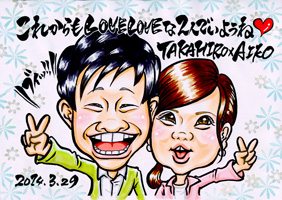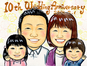 温かみある優しい風合いの似顔絵です 当店の基本となるタッチです