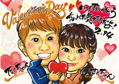温かみある優しい風合いの似顔絵です 当店の基本となるタッチです